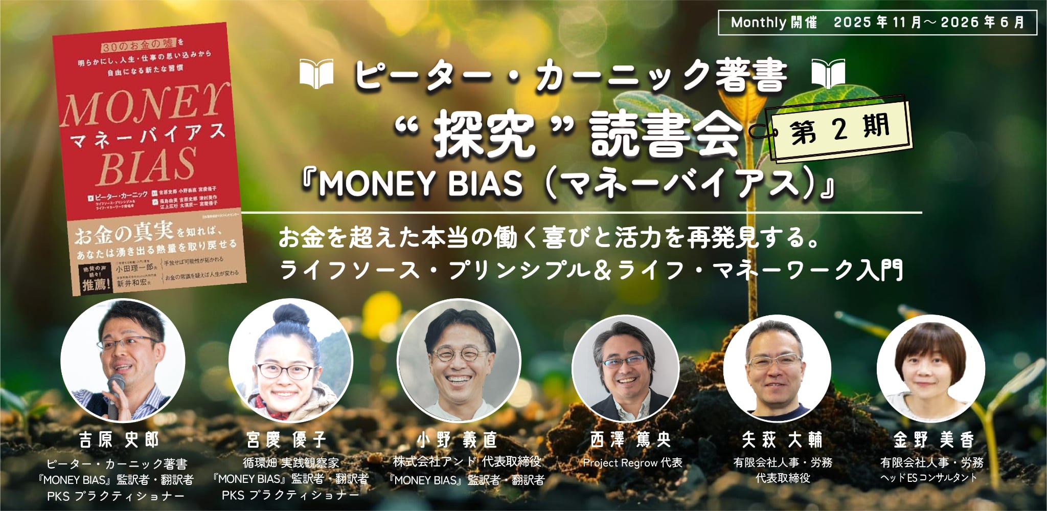 【第2期】ピーター・カーニック著書 “探究”読書会📚 『MONEY BIAS(マネーバイアス)』お金を超えた本当の働く喜びと活力を再発見する。ライフソース・プリンシプル&ライフ・マネーワーク入門 詳細>>
