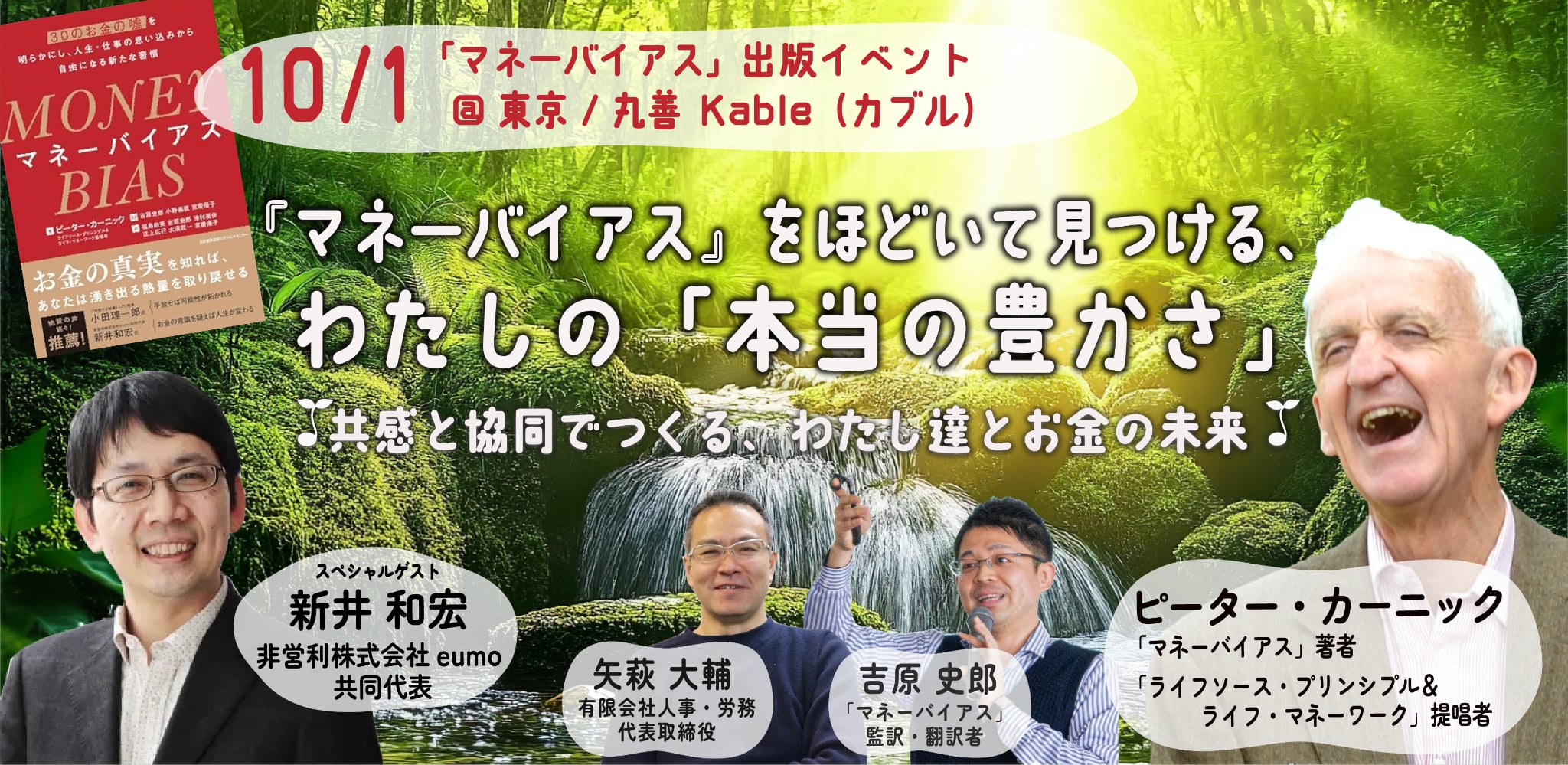 【無料】ティール本出版から7年。『MONEY BIAS(マネーバイアス)』監訳者:吉原史郎氏が今、一番伝えたいこと。出版先行特別 トークLIVE(対話付き) ~「マネーバイアス(お金への思い込み)」から紐解くティール組織&ソース・プリンシプルの3つの本質的実践とは?~詳細>>