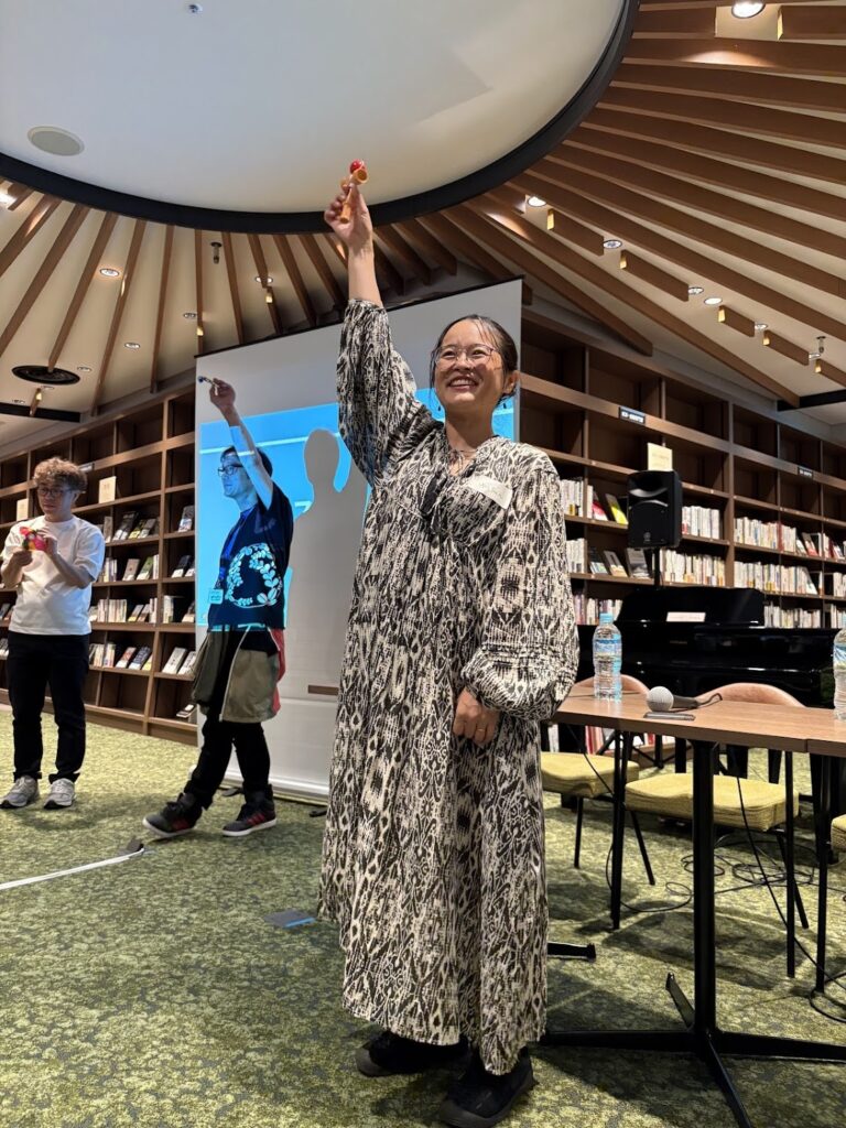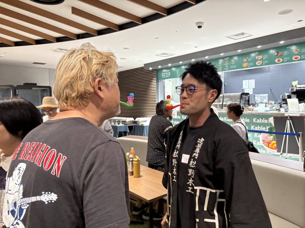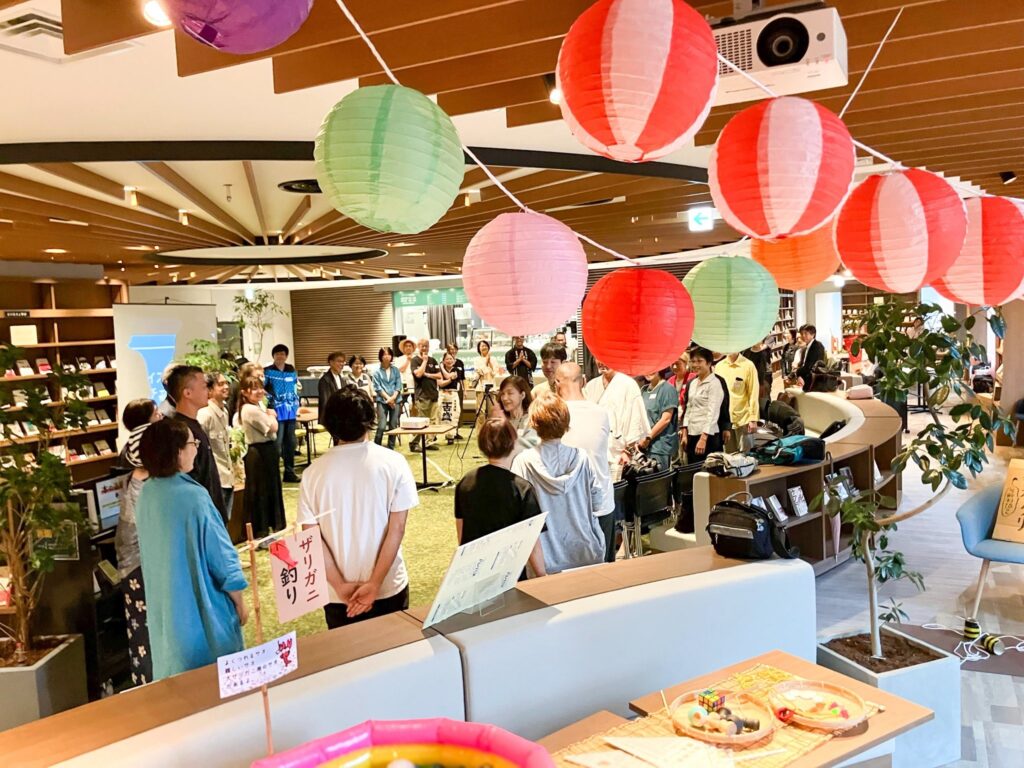 会場の入り口には縁日コーナーが設けられ、風船や射的などが並び、来場者を和やかに迎えました。受付では色とりどりのオモチャの中から、自分の心が惹かれたオモチャを選びました。参加者はペアになって「オモチャのどこに心惹かれたのか?」を語り合い、童心にかえるアイスブレイクが行われました。