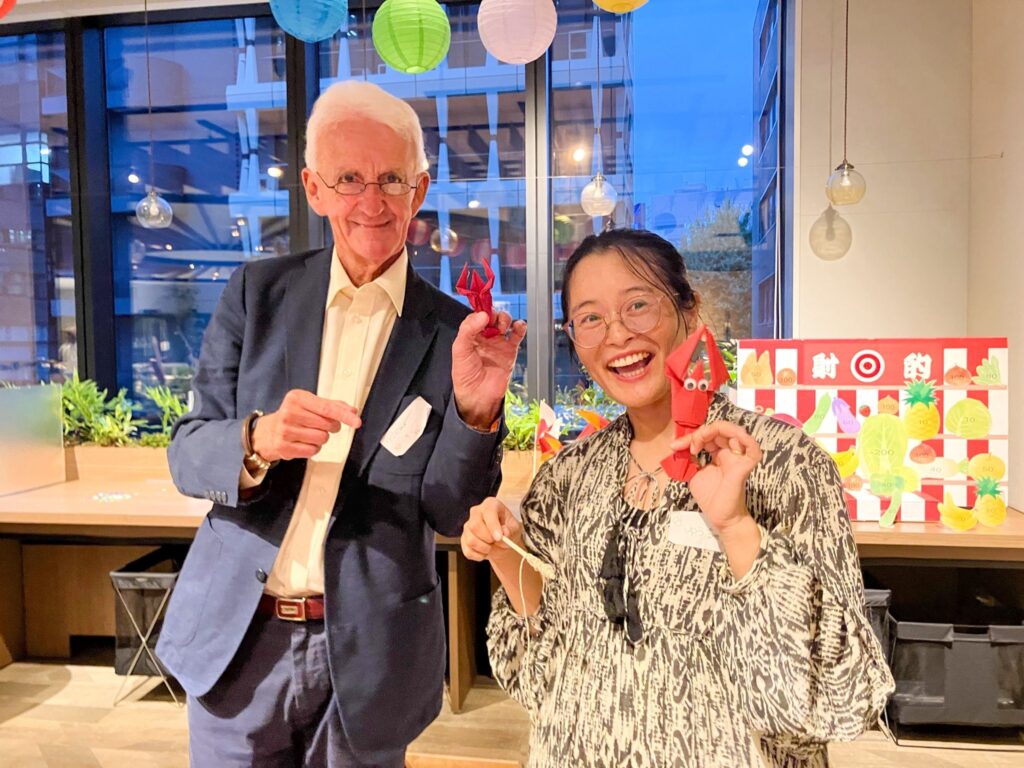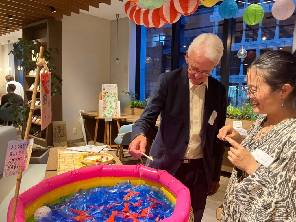 ピーター氏も屋台で折り紙のザリガニを釣りあげようと遊んでいます(^^)