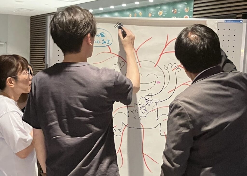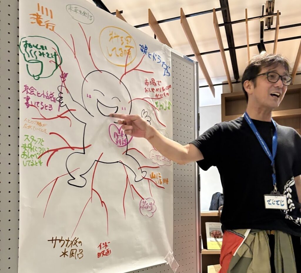でじでじさんも場づくりに加わり、参加者の皆さまと全員で、「自分のインナーソースがイキイキとしている場面」について、模造紙とインナーソースの絵を使って、描きながら、深めていきます。